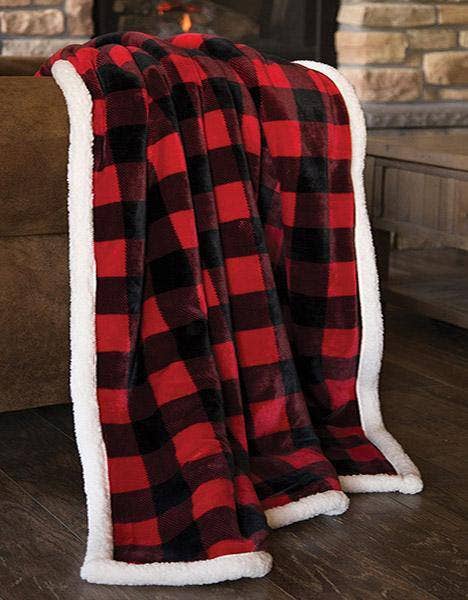 Linen Mart - Lumberjack Plaid Plush Fur Sherpa Borrego Fleece Throw Blanket