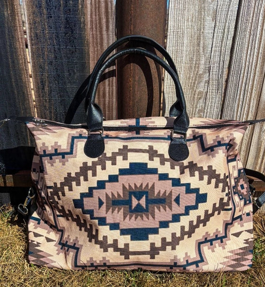 Get carried away with our Navajo Rug XL Tote! This spacious tote features a cute Navajo rug pattern, perfect for carrying all your essentials. A must-have for anyone looking to add a touch of quirkiness to their style.