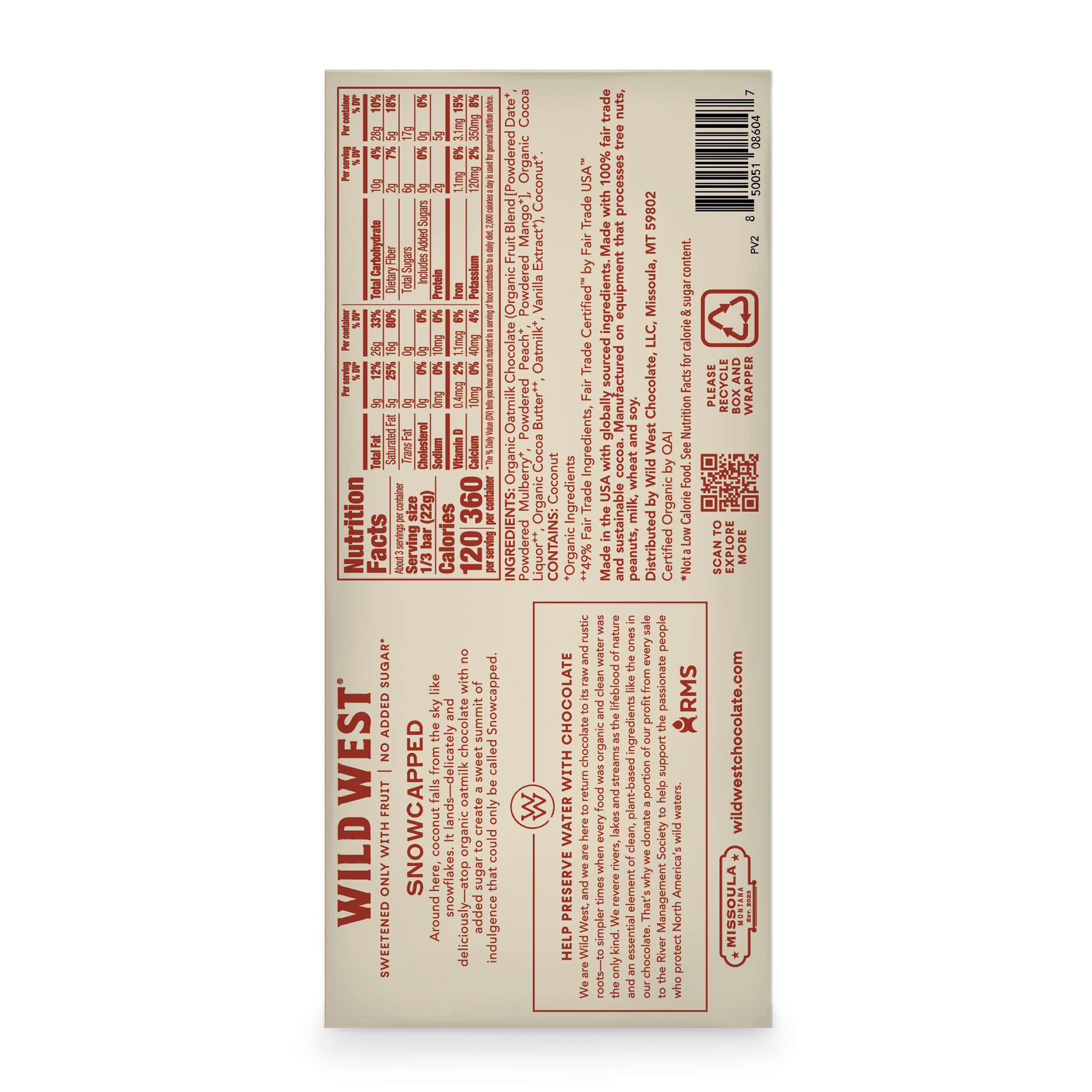 This bar brings you the perfect blend of bold cacao flavor balanced by the silky-smooth taste of oatmilk, sprinkled with bits of toasted coconut to create a sweet summit of indulgence that could only be called Snowcapped. Every bite is pure bliss.