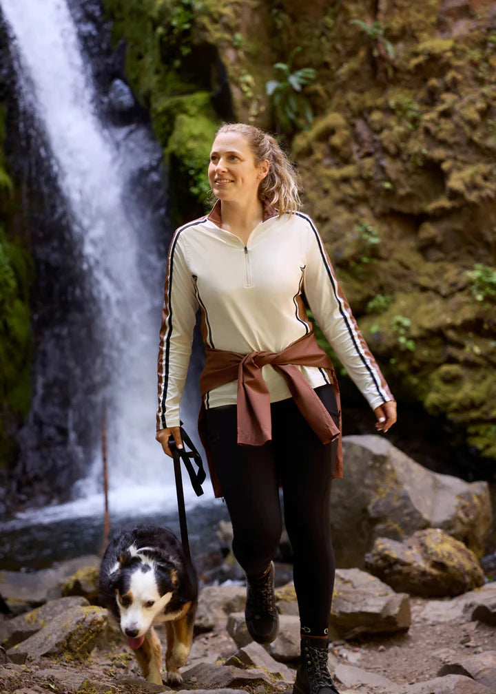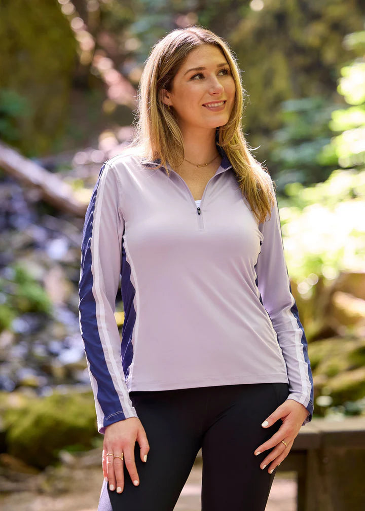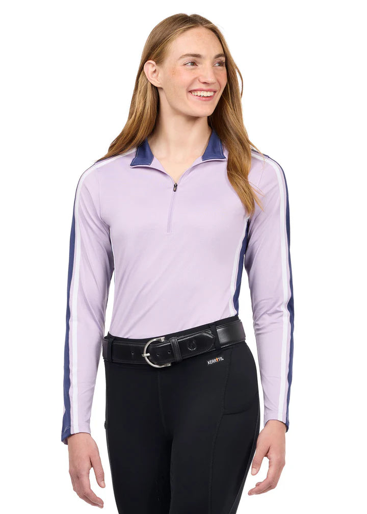 Perform your best in this lightweight, cooling long sleeve riding shirt designed for active days in the saddle. Powered by Coolcore® technology, the breathable fabric quickly distributes sweat to keep you dry and comfortable, with UPF+40 sun protection. Sporty contrast panels and stripes enhance the feminine, athletic silhouette, while the ten-inch zip collar allows for adjustable airflow. Finished with an equestrian-shaped hem that stays neatly in place through every ride.