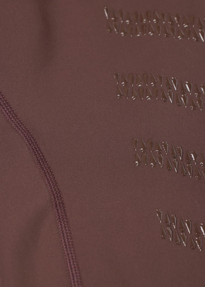 Double-layer, contoured waistband with front power mesh offers smoothing coverage and light tummy support, designed with minimal seams for reduced bulk and a smooth, pinch-free fit at the waist