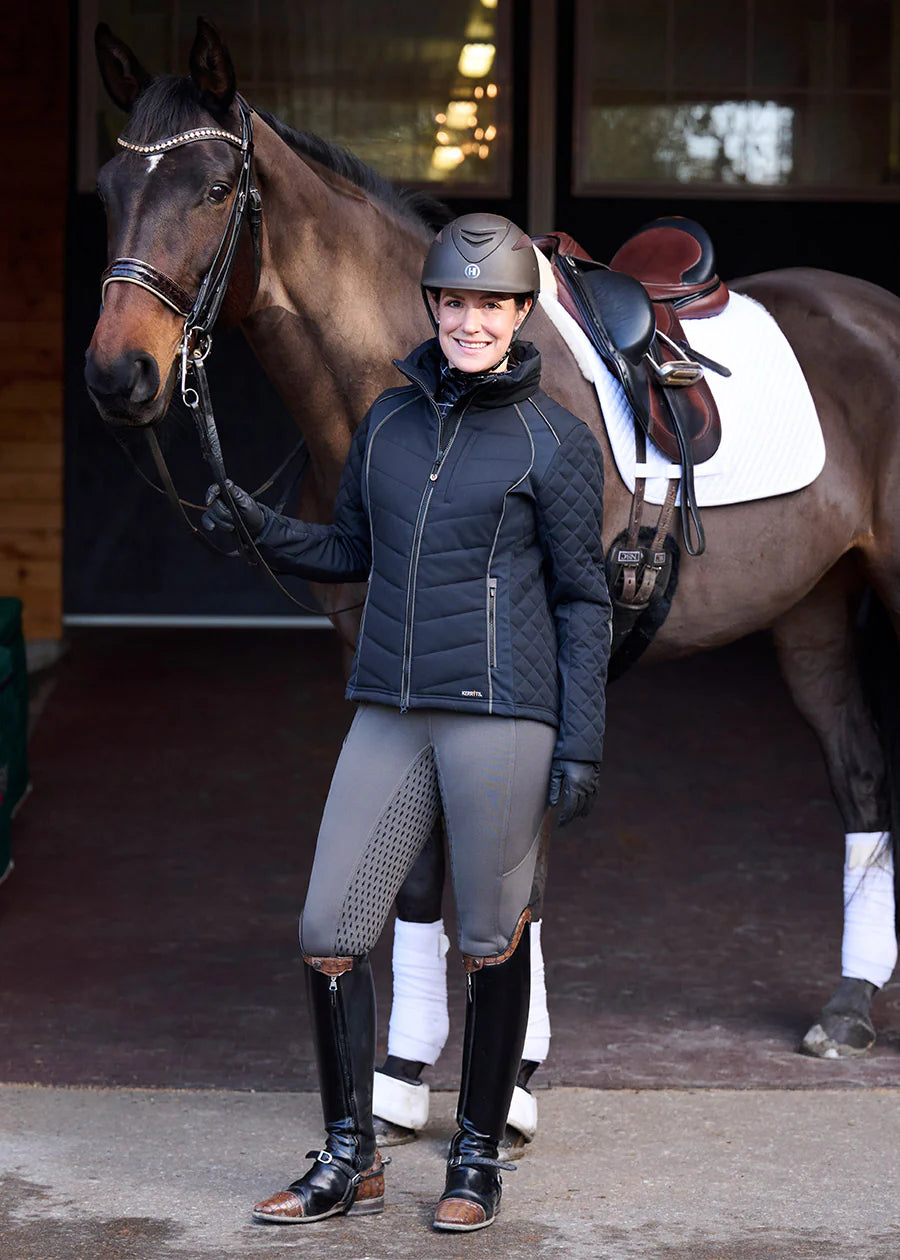 Engineered for ultimate weather protection, these winter riding tights seamlessly blend full-seat security with a cozy brushed interior to keep you warm in the coldest conditions. The durable Polartec® Wind Pro® exterior provides wind resistance and water repellency, while its tight-knit construction helps retain body heat without sacrificing breathability. Thoughtfully designed features include a quick-access side pocket for essentials and a three-inch wide comfort waistband with belt loops for a tailored fit. With Kerrit Sticks™ silicone full seat technology, enjoy enhanced stretch, flexibility, and a secure grip in the saddle for confident rides all winter long.