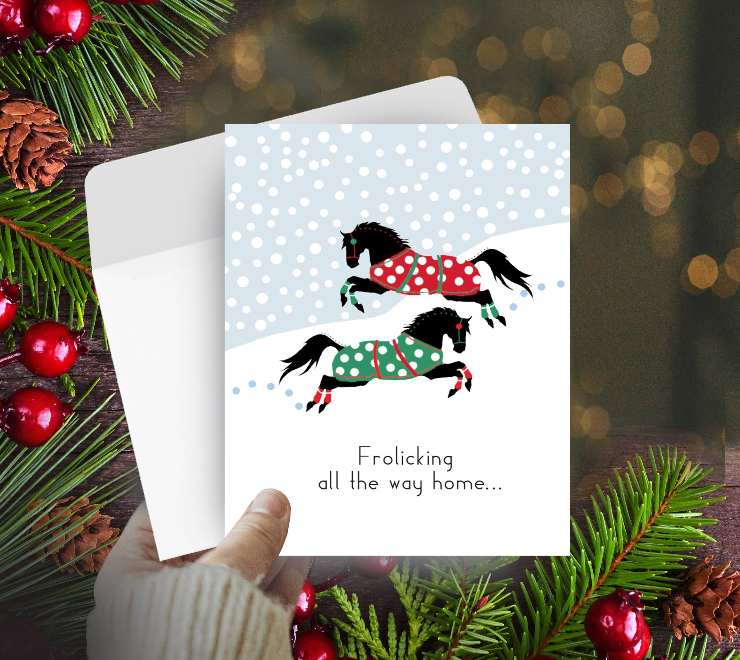 Horse Hollow Press - Horse Boxed Christmas Cards / Frolicking Snow / 8 Holiday