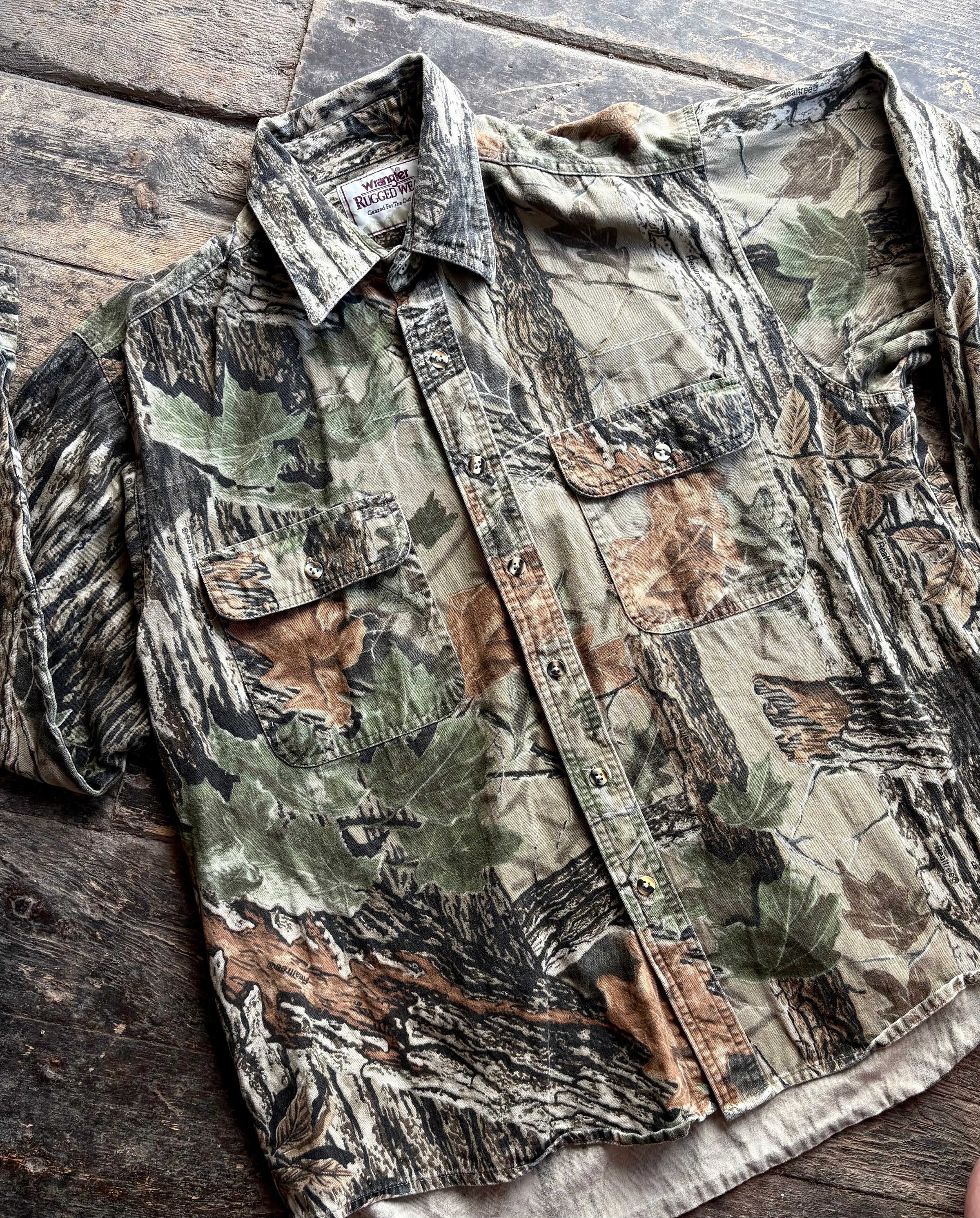Wrangler Rugged Wear Camo button up long sleeve shirt. Men's size XL.